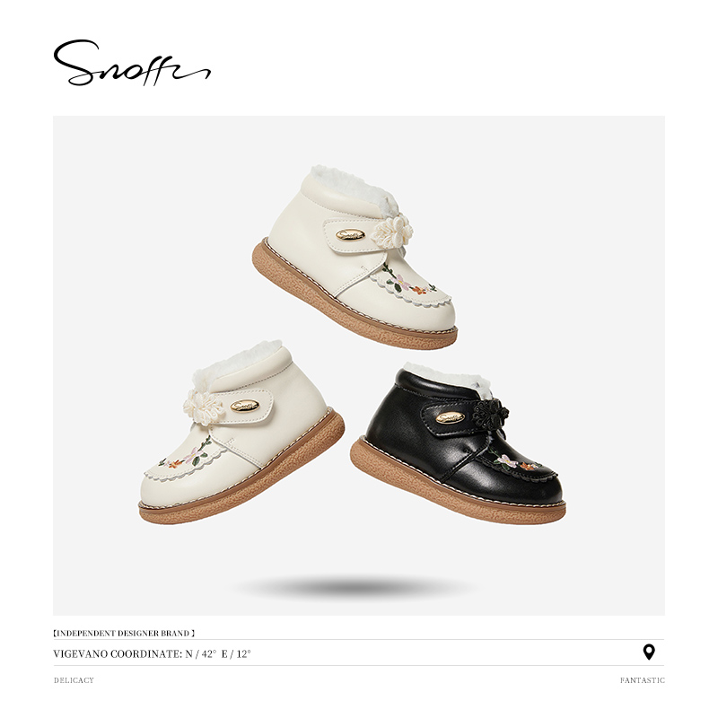 斯纳菲儿童棉鞋 小女孩新年绣花宝宝加绒女童雪地皮靴 大棉2025冬季