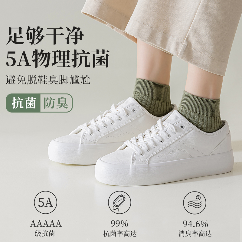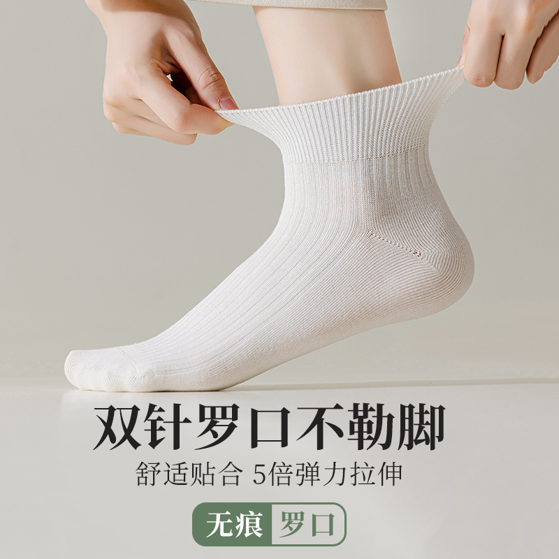 全棉短袜子女春秋季 中短筒无骨 纯棉吸汗防臭抗菌夏透气运动秋冬款