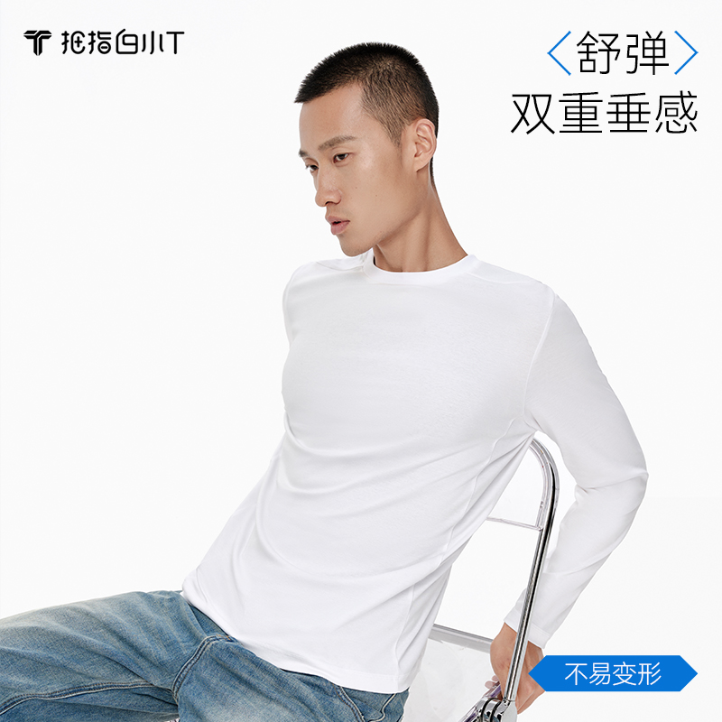 修身 新款 百搭舒适抑菌运动上衣 T恤男秋季 白小T奥莱液氨落肩长袖