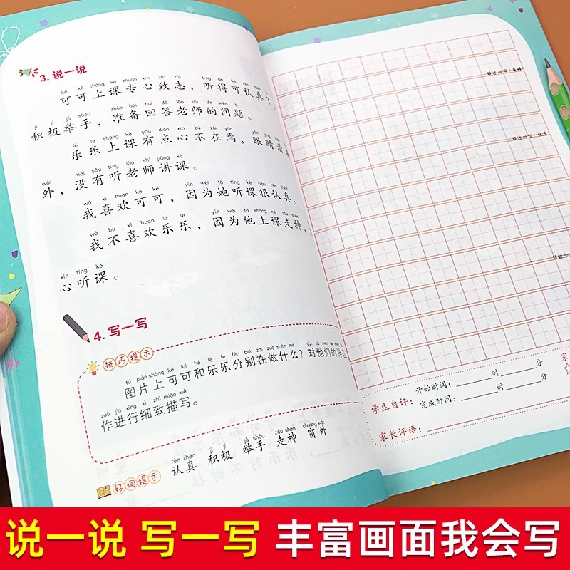 一年级看图说话写话训练黄冈名师写作技巧书籍 同步语文作文起步训练入门辅导书小学生看图写话本天天练素材积累范文大全 人教版