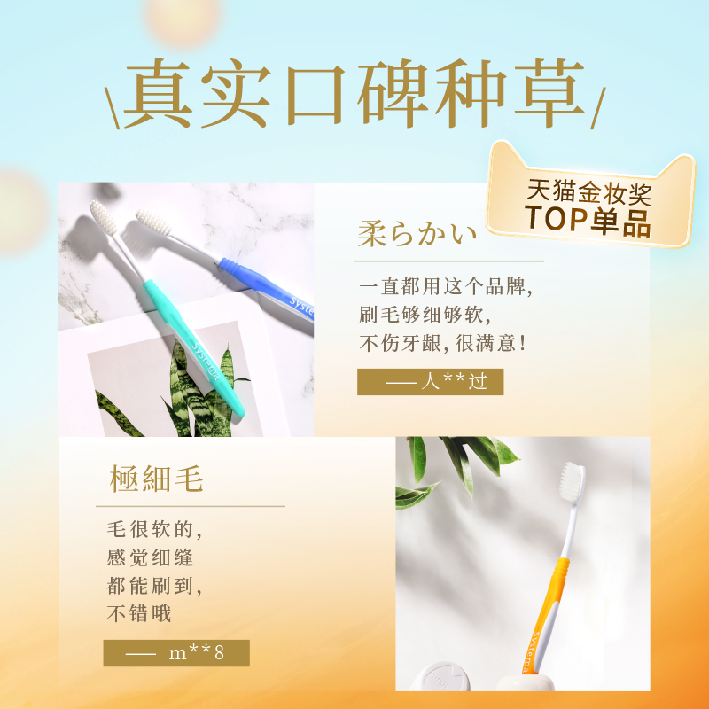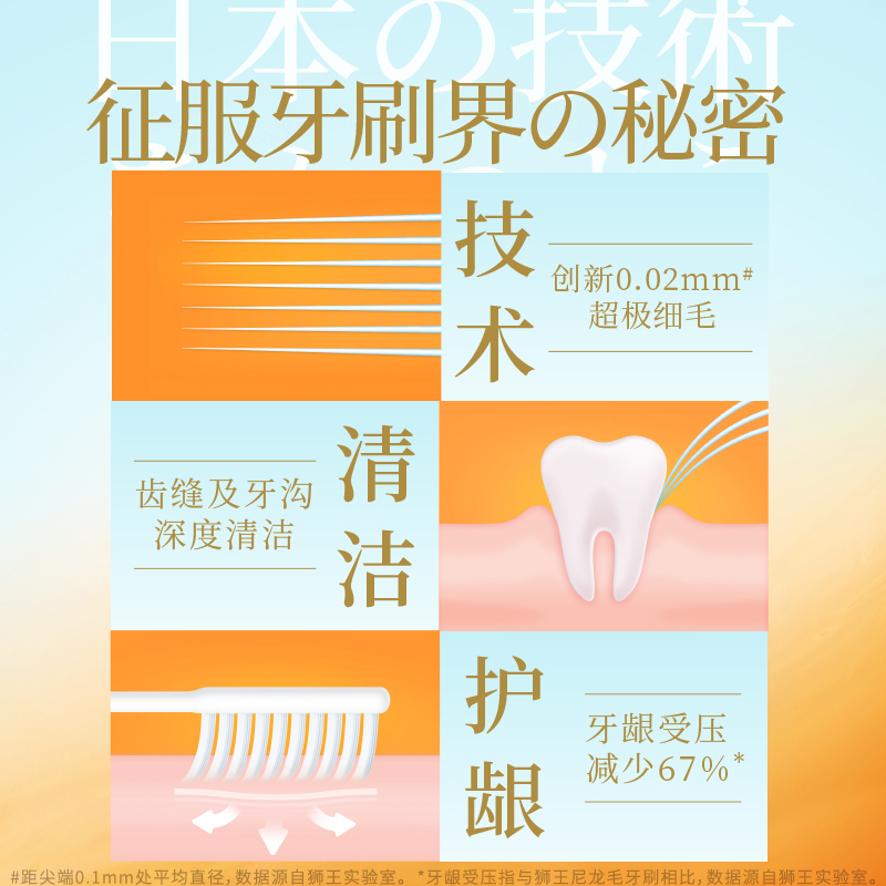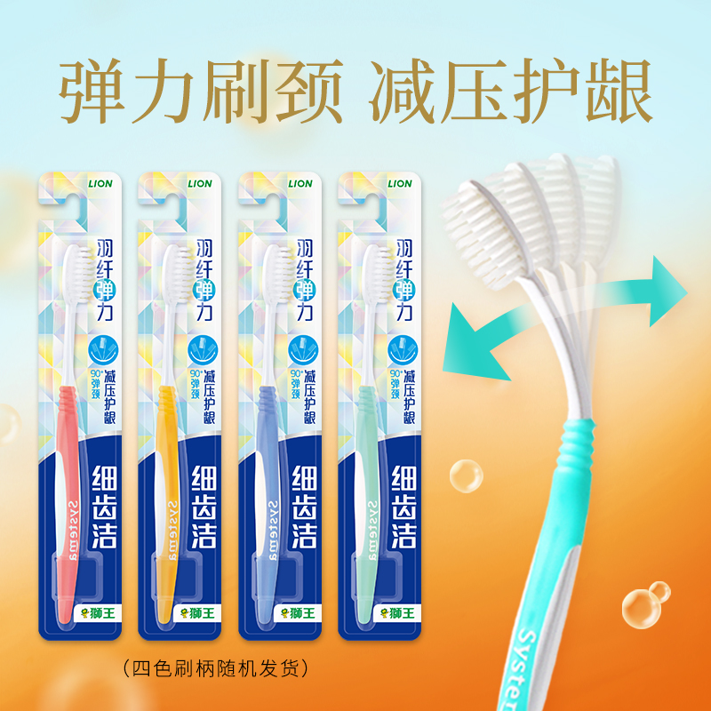 LION狮王细齿洁羽纤抗敏牙刷细毛软毛家庭装 弹力刷柄护龈清洁10支