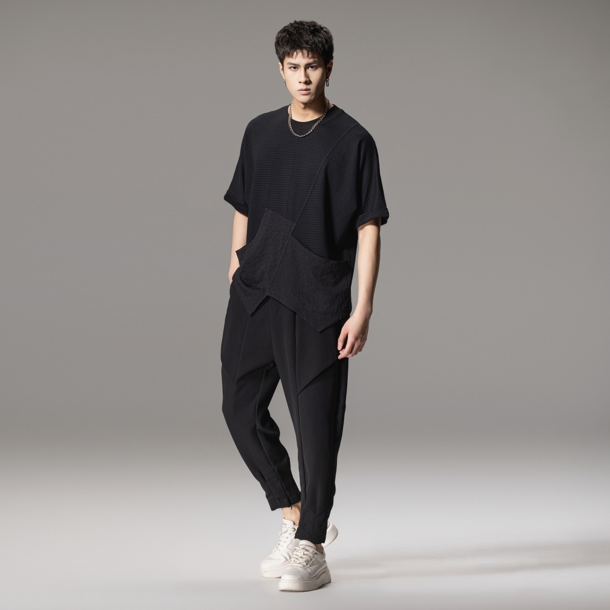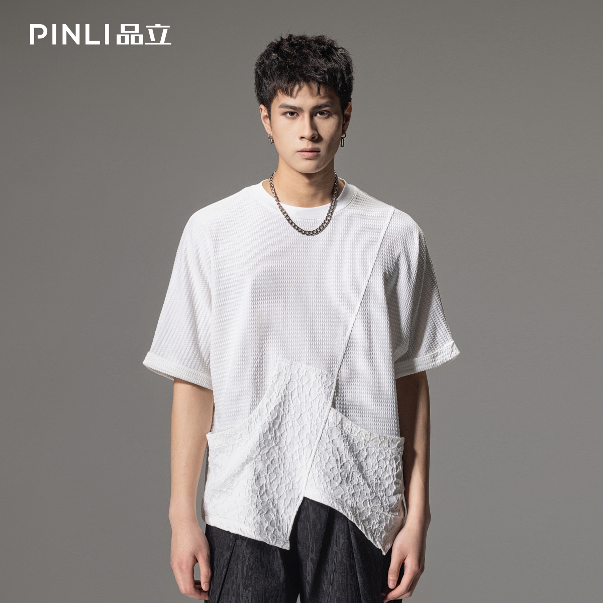 T恤男士 拼接短袖 潮牌纯色宽松休闲体恤上衣 新款 PINLI品立夏季