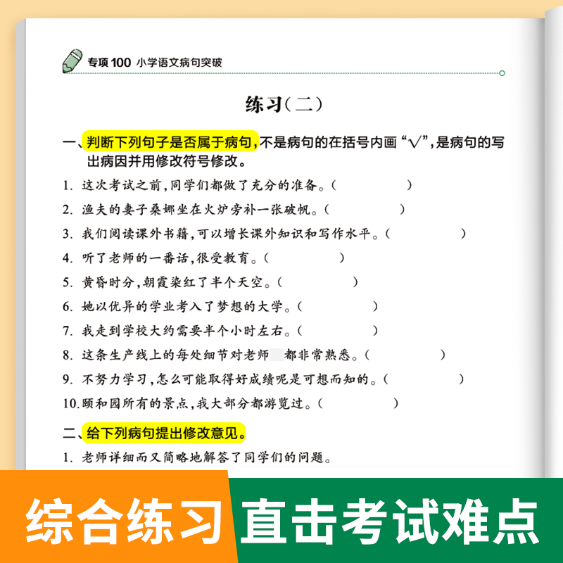 易蓓 病句修改大全讲解训练高分突破强化练习册习题本 小学生语文病句修辞标点成语近义词叠词突破专项训练三四五六年级人教版