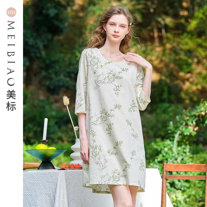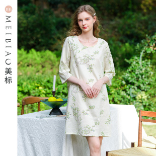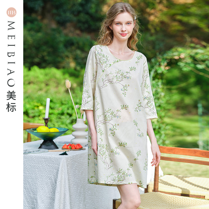 国风全棉睡衣贡缎薄款 纯棉睡裙女新中式 家居服 春夏七分袖 美标新款