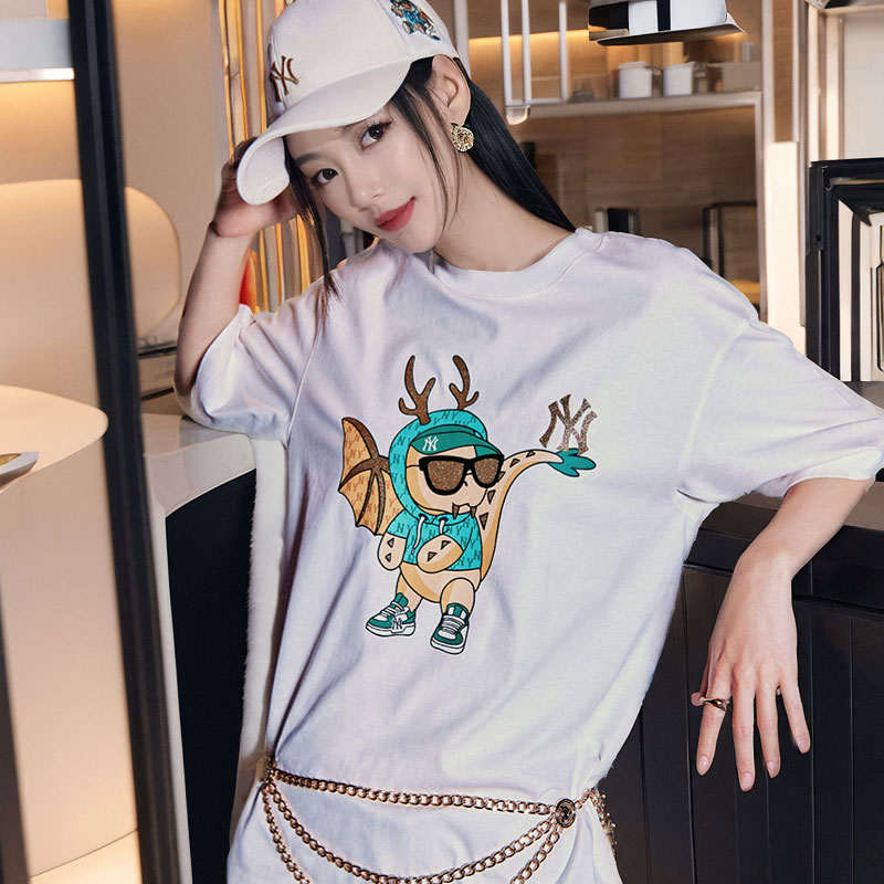 自营 运动休闲服宽松上衣龙年半袖 MLB短袖 女装 情侣圆领T恤 男装