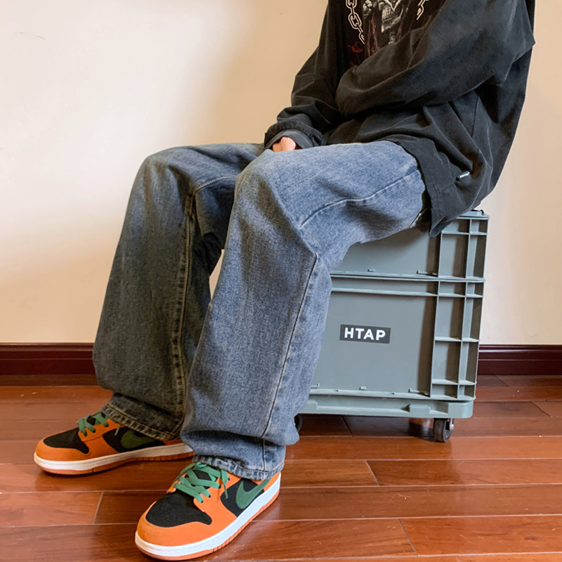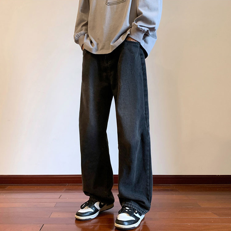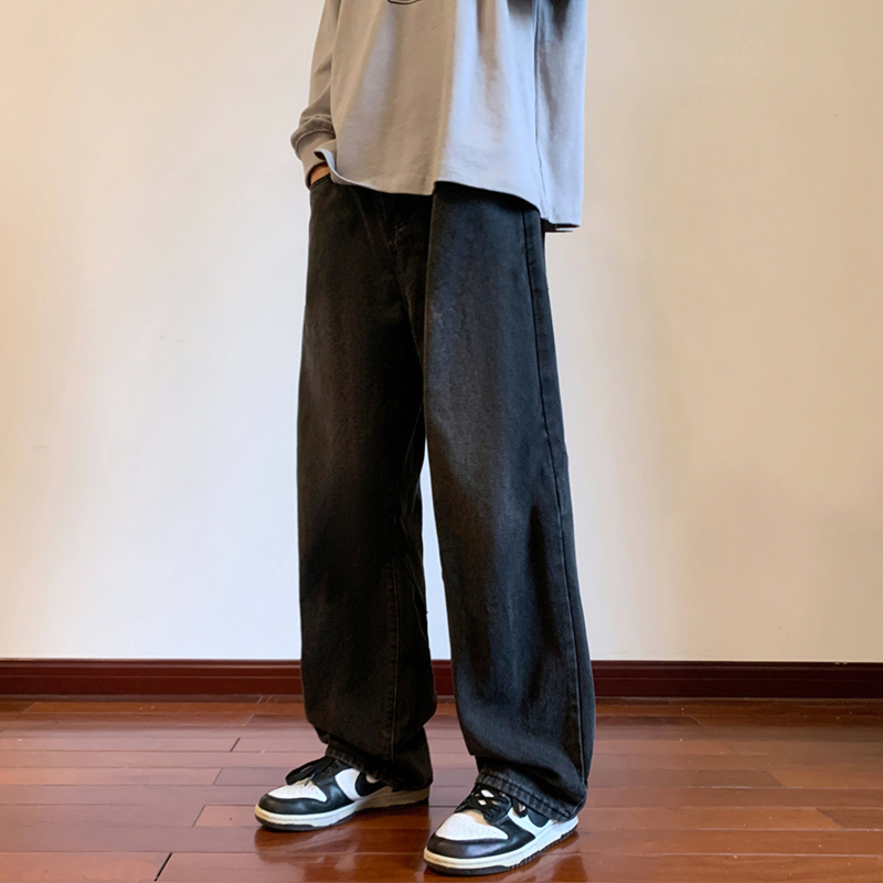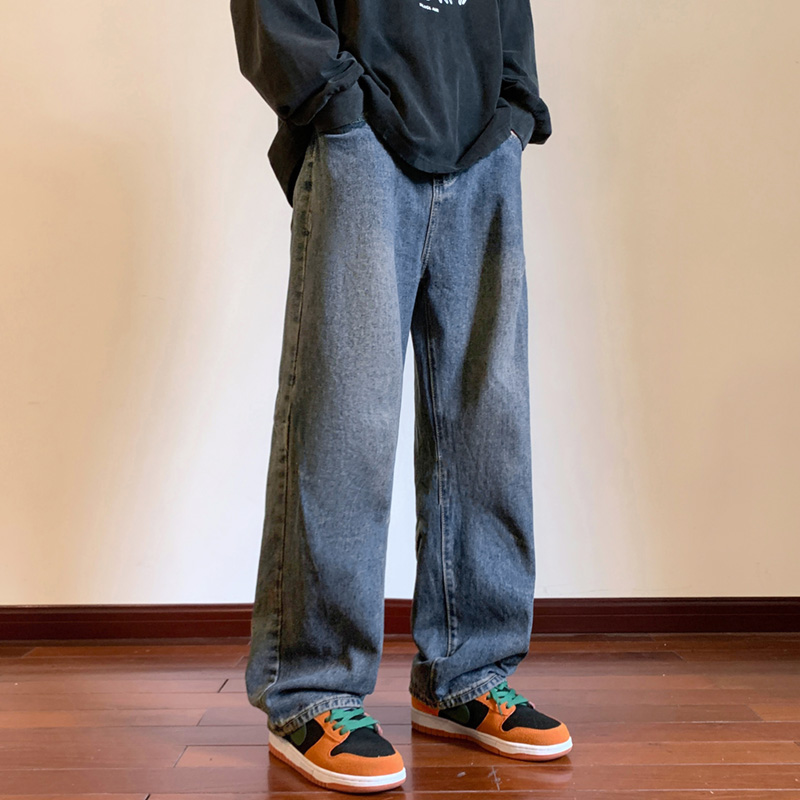 丹宁原色潮牌阔腿A字长裤 男春秋季 子 宽松直筒牛仔裤 HomePanda美式