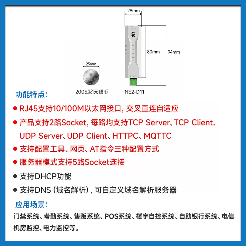 IP转串口物联网模块通信设备通讯TCP232 串口服务器RS485转以太网Modbus网关网口TCP 304 有人物联网