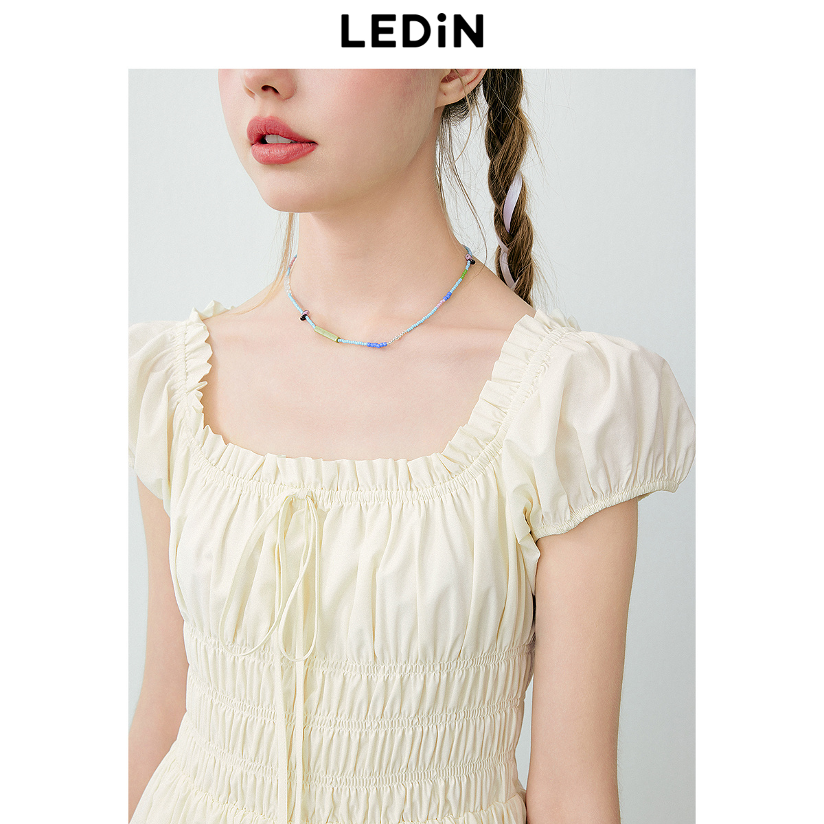 连衣裙女法式 COCOBELLA赫本风捏褶泡泡袖 茶歇裙FR3033B 折扣季