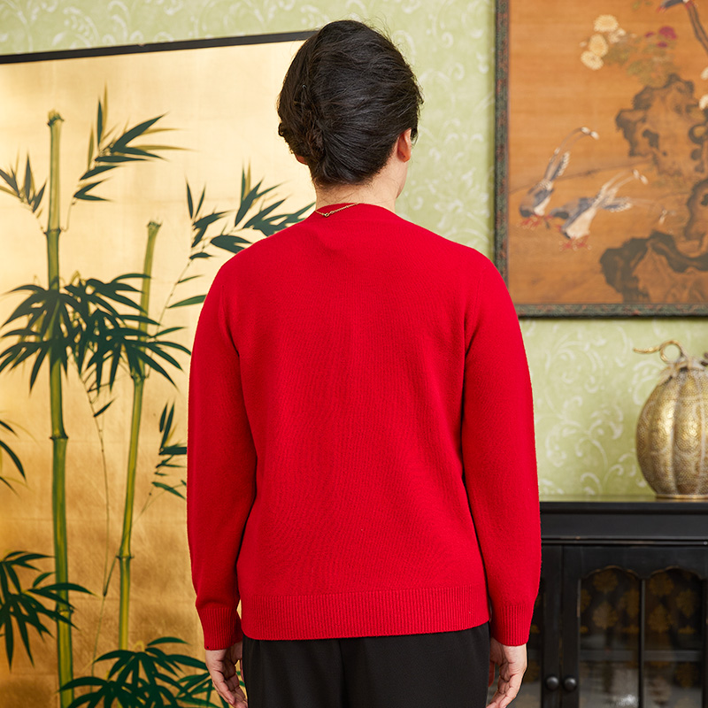 女装 羊毛衫 春装 红色盘花图案圆领时尚 潮624102310 新款 胖太太大码