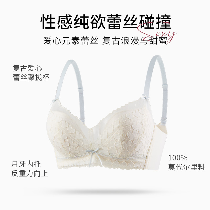 纸片人内衣女大胸显小胸夏季 无痕提拉收副乳防下垂软支撑文胸 薄款