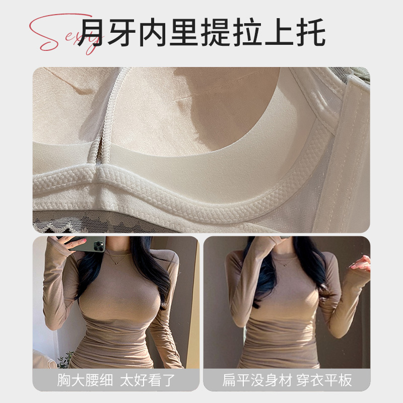 提拉无痕软支撑内衣女小胸聚拢薄款 提拉文胸罩 运动一体美背背心式