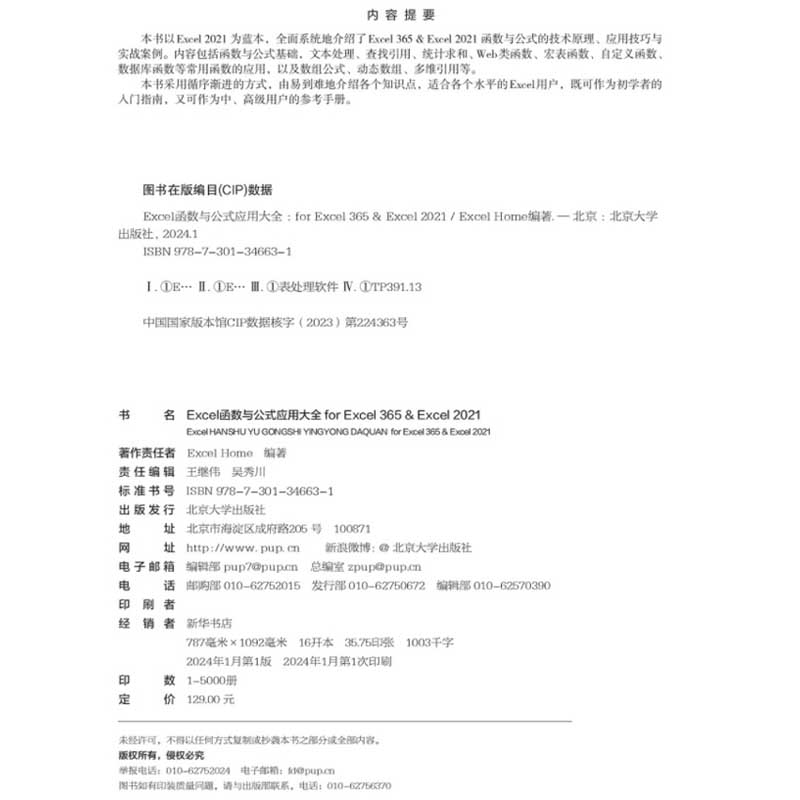 社9787301346631 Excel函数与公式 北京大学出版 Home 2021 365 Excel 应用大全for 2024新书 正版