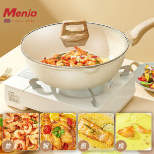 英国明爵不粘锅炒锅家用麦饭石炒菜锅平底锅不沾锅电磁炉燃气专用