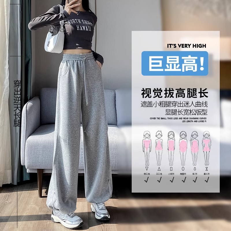 子春季 清仓捡漏藏蓝色运动裤 女束脚高腰宽松休闲直筒阔腿灯笼卫裤