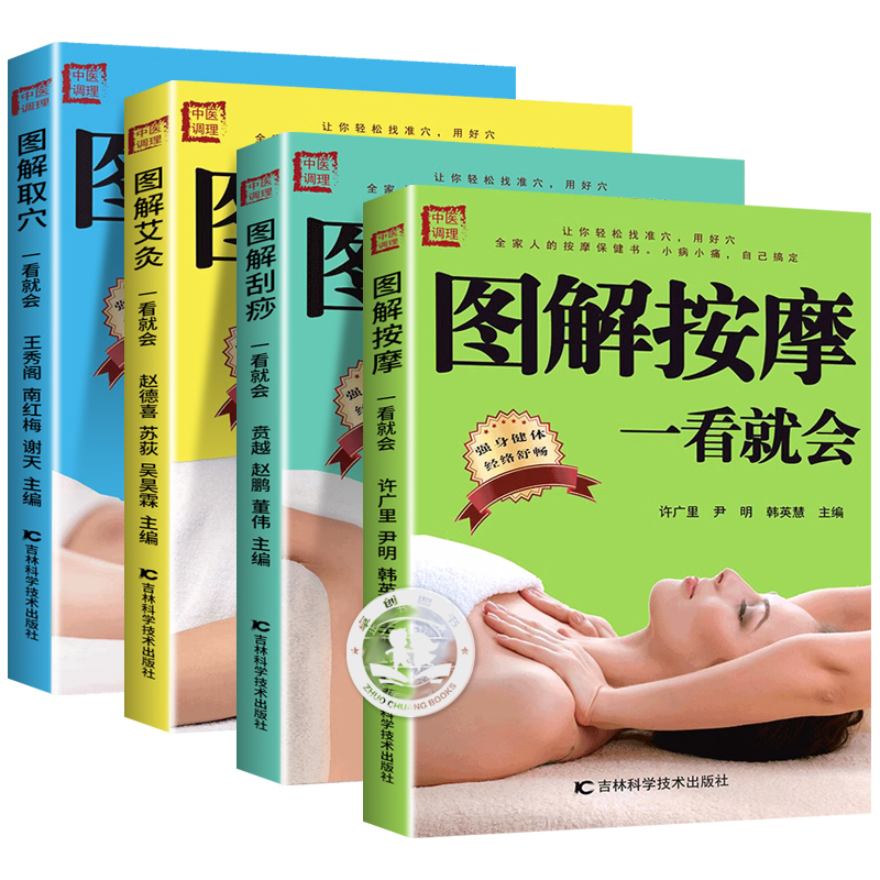 零基础学推拿养生书籍大全书穴位图人体经络中医养生家庭保健养身穴位针灸护理教程 图解刮痧艾灸按摩取穴 全套4册 中医推拿按摩书