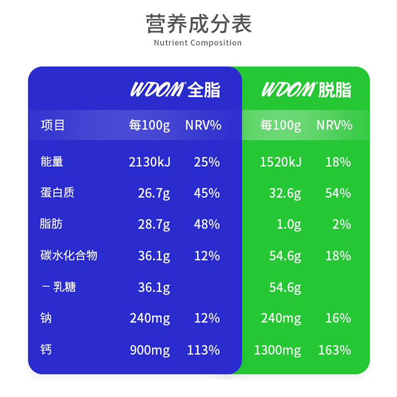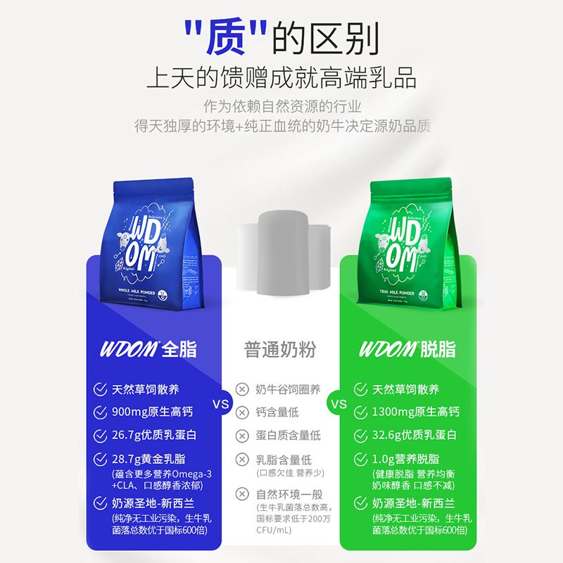 新西兰WDOM渥康全脂脱脂奶粉速溶中老年青少年学生儿童营养牛奶粉