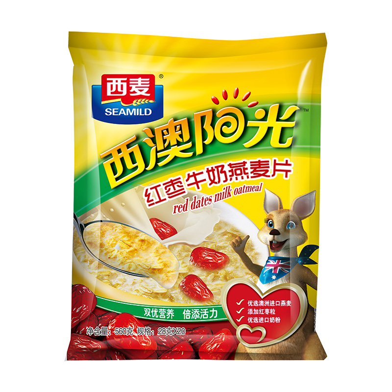 西麦红枣牛奶燕麦片560g即食独立包装 营养早餐冲饮方便携带高蛋白