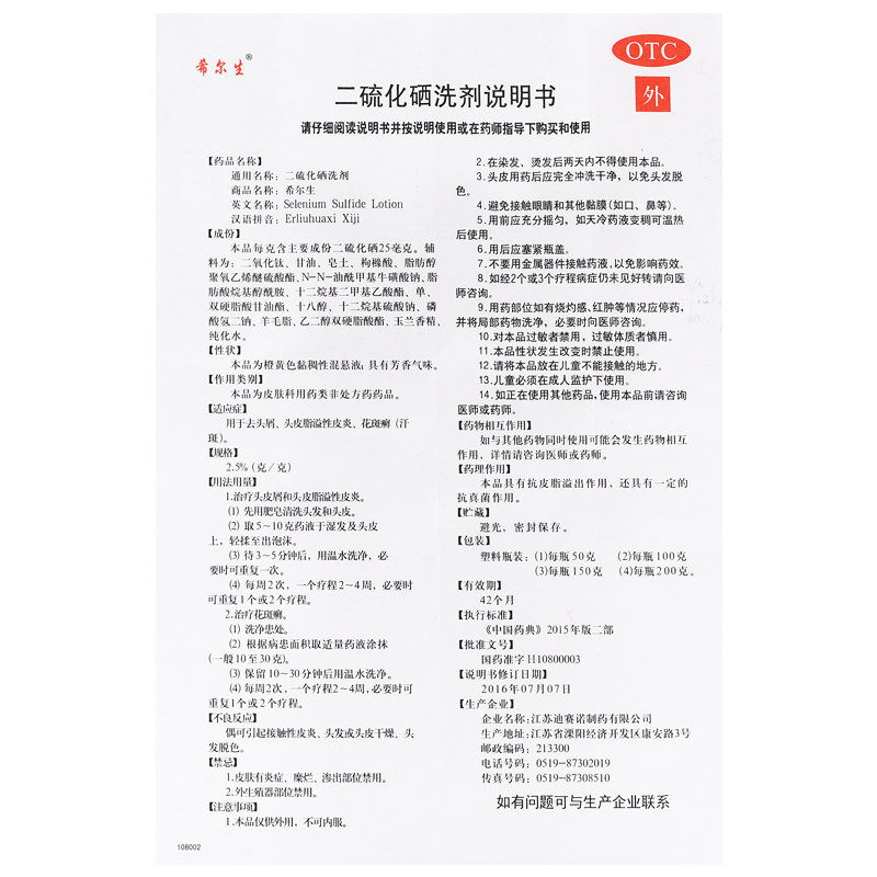 希尔生二硫化硒洗剂100g 洗头水 去头屑头皮脂溢性皮炎花斑癣