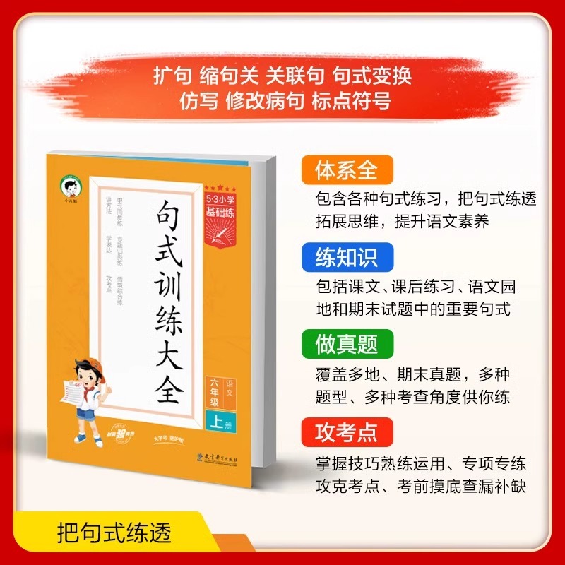 语文专项汉语拼音背诵默写能手五三天天练曲一线 训练大全阅读真题60篇一二年级三四五六上下册人教版 2025版 53基础练积累与默写句式