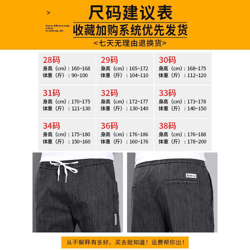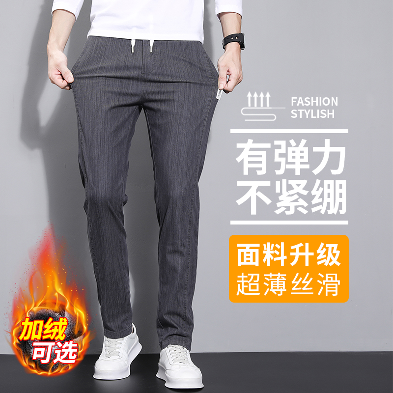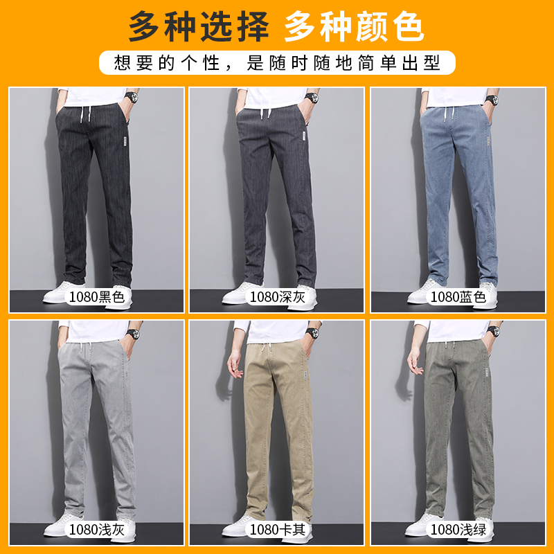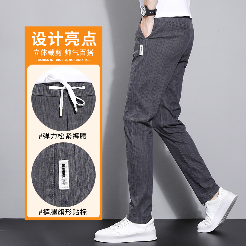 长裤 夏季 冰丝男款 牛仔裤 子男裤 直筒宽松休闲裤 百搭弹力裤 男士 薄款