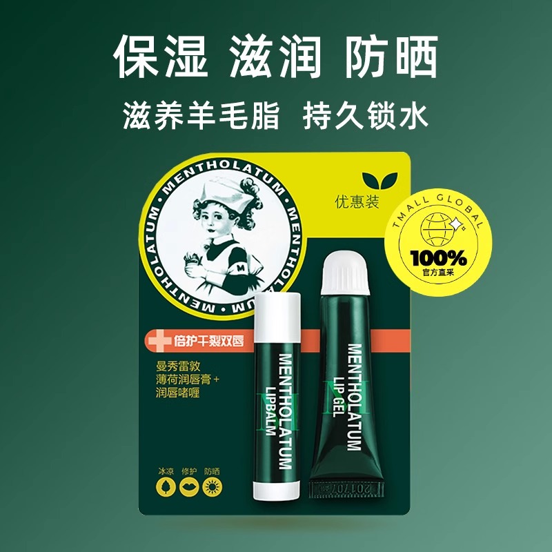 滋润套装 薄荷唇膏3.5g保湿 曼秀雷敦薄荷润唇啫喱8g 唇膜 自营