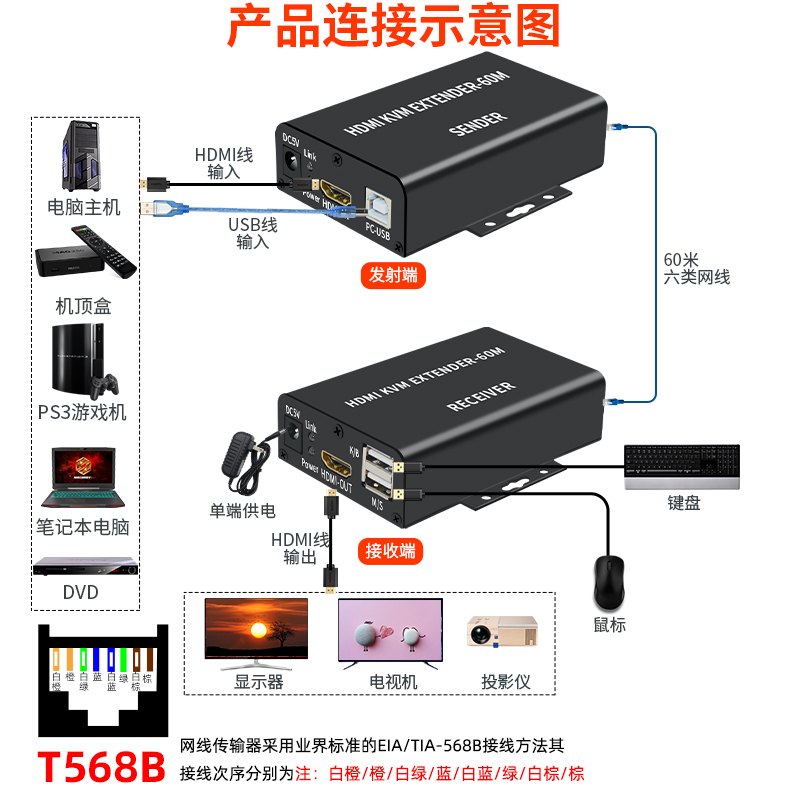 山泽网线一分二同时上网络分线器网口千兆延长交换机一拖二对接头