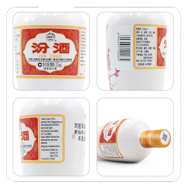 汾酒53度出口瓷汾375mlX6高度清香型白酒6瓶 2019年老酒 2018