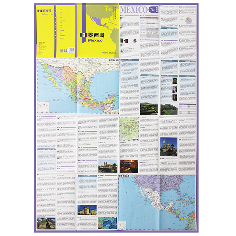 双面印刷 社 墨西哥地图 星球地图出版 地理百科 折叠便携 世界分国地理图 1240x890mm大图 墨西哥 折叠袋装