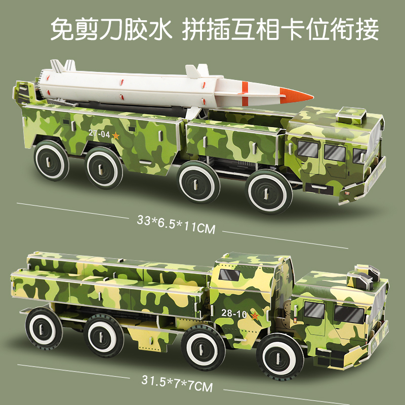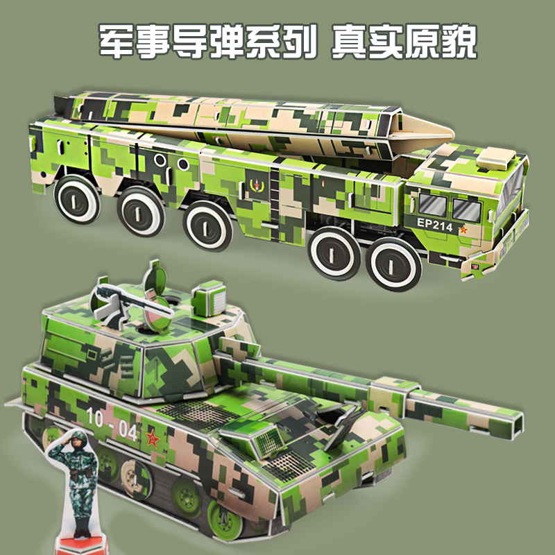 3d立体拼图3到6岁儿童拼装 军事坦克战斗机火箭模型男孩益智玩具12