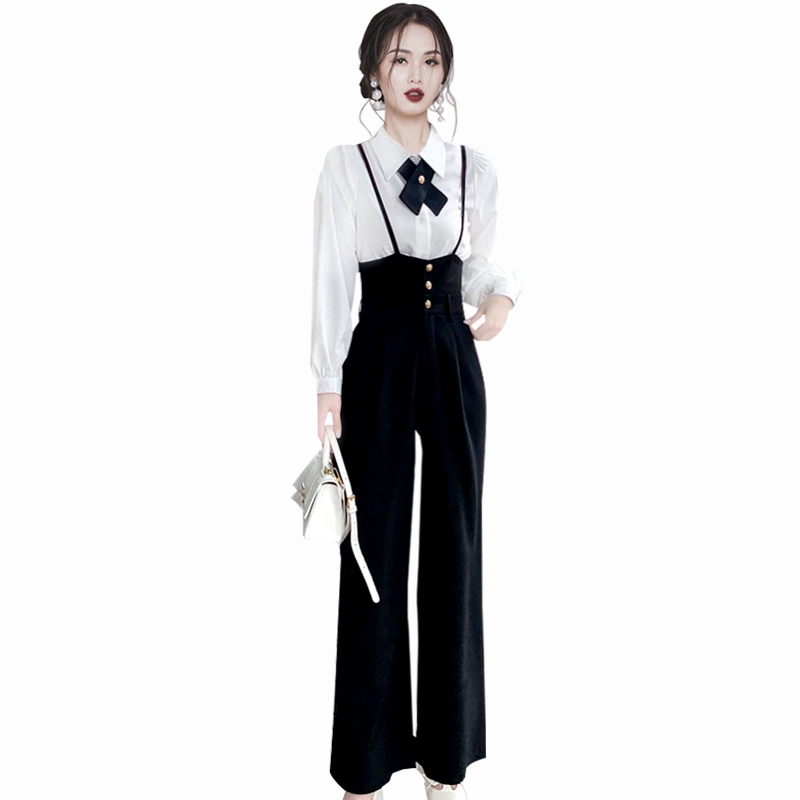 小香风气质名媛两件套白长袖 女装 衬衫 高腰阔腿裤 秋季 套装 2025新款