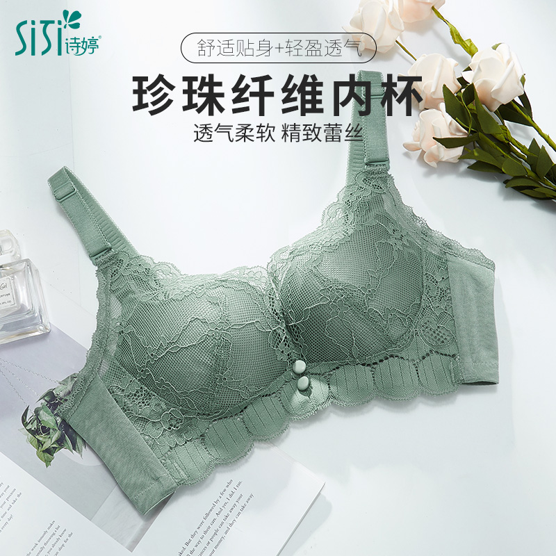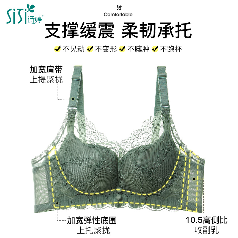 芬腾女士内衣大胸显小上托防下垂文胸蕾丝性感聚拢薄款 无钢圈胸罩