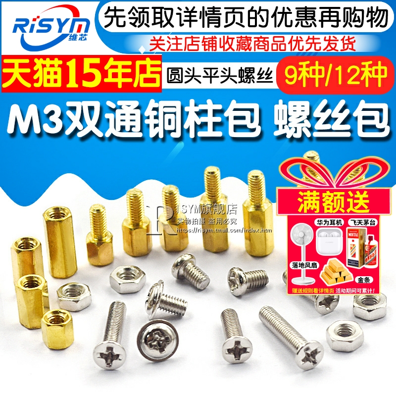 双通 圆头平头 螺母 M3铜柱螺丝包9种 12种