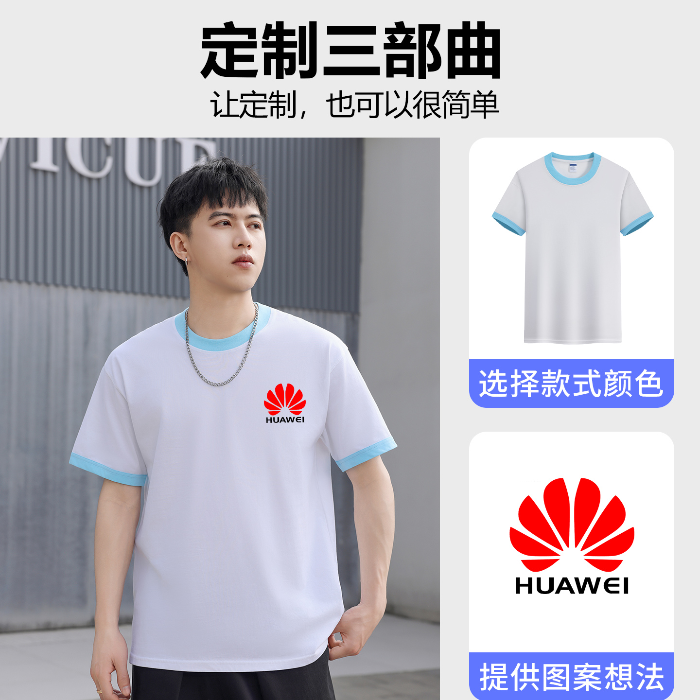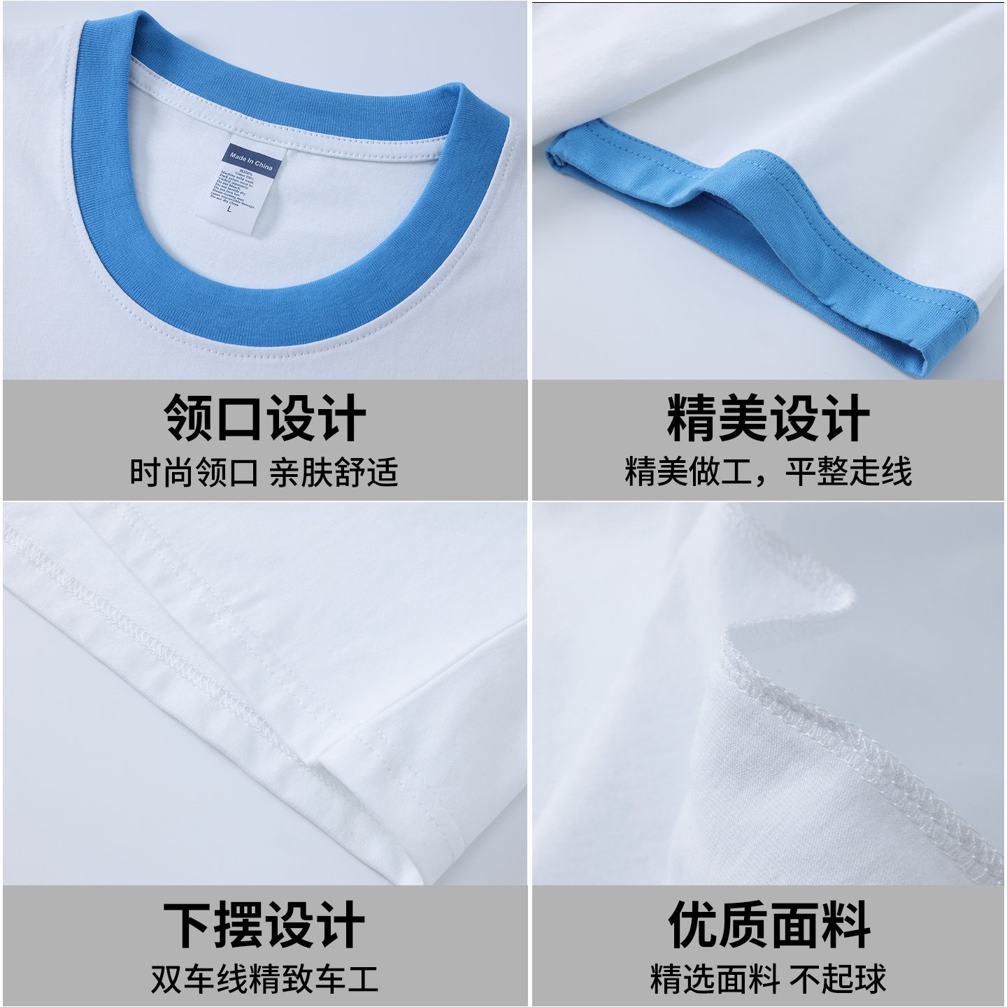 撞边T恤圆领亲子装 纯棉经典 758 印制图案刺绣DIY印logo文化衫