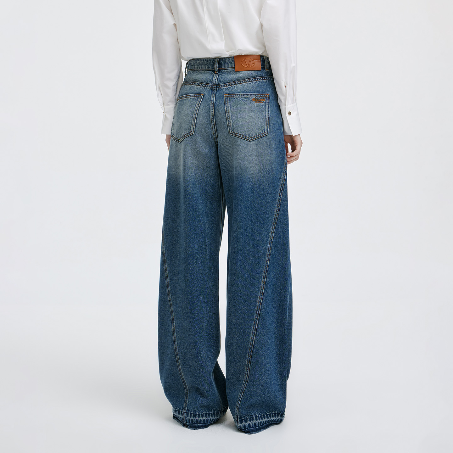 阔腿宽松弯刀裤 做旧水洗牛仔裤 L2C5NK119 美式 indicia标记2025新款