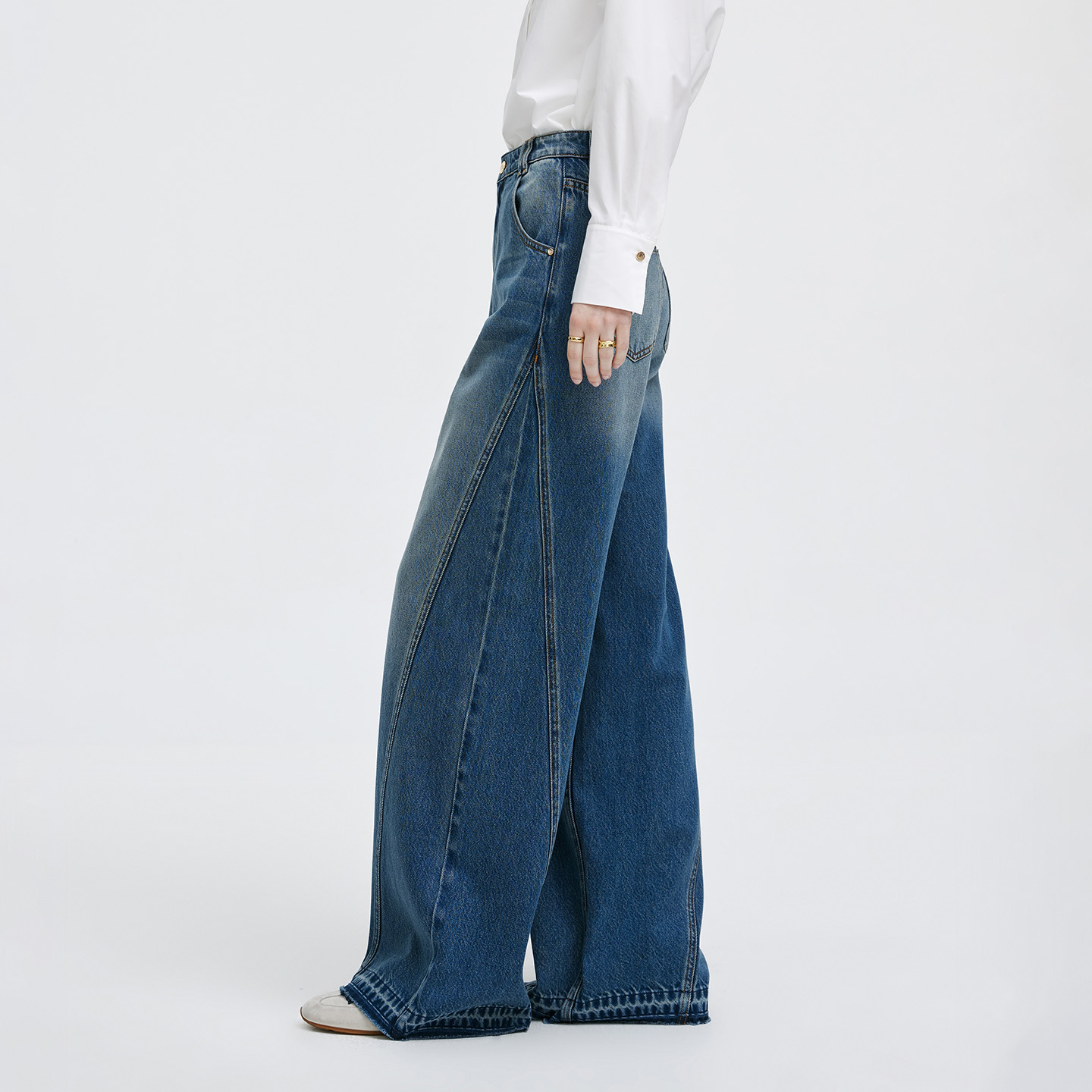 女复古长裤 森马牛仔裤 2025春季 新款 百搭 森柔牛仔 阔腿裤 商场同款