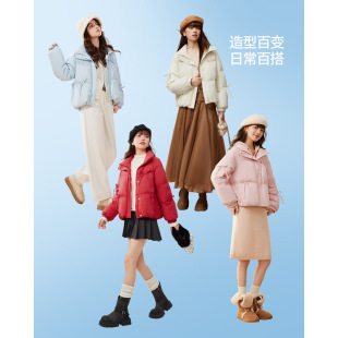 骆驼泡芙羽绒服女短款 加厚防风防水保暖连帽面包服外套女 2024冬季