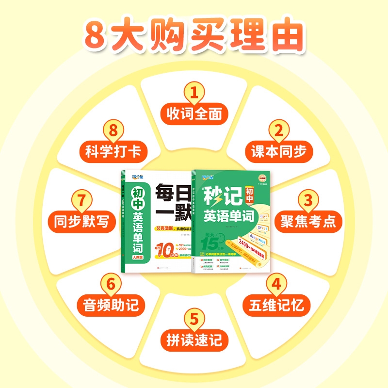 同步口诀考点 中考词汇单词本必背2000词七八九年级上册汇总必备背诵神器速记默写本每日新版 星秒记初中英语单词2025新改版 人教版