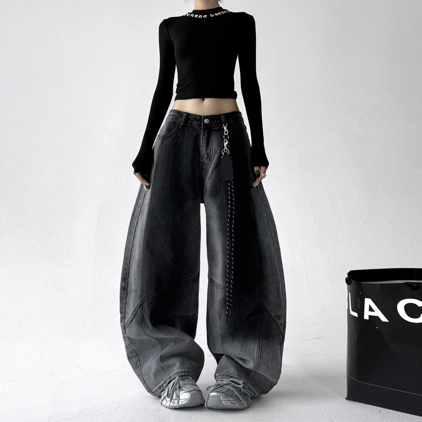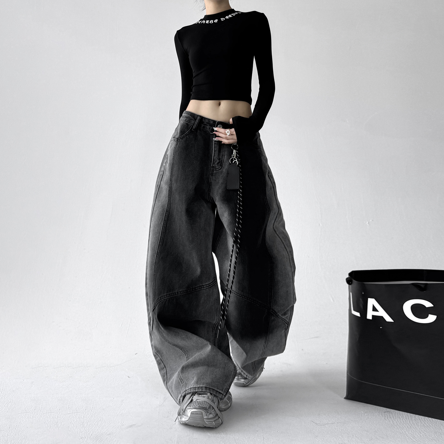 高腰显瘦小个子通勤阔腿裤 ELLE法式 新款 女2025秋季 黑色休闲牛仔裤