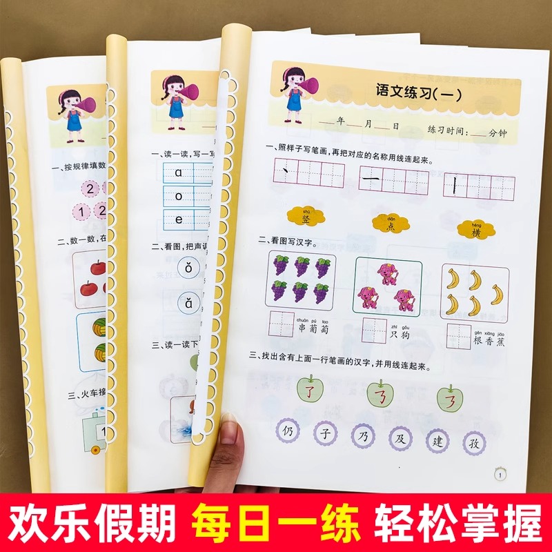 入学准备60天幼小衔接暑假作业教材全套语文数学语言一日一练每日一练与测人教版 拼音专项训练学前班练习册大班升一年级识字测试卷