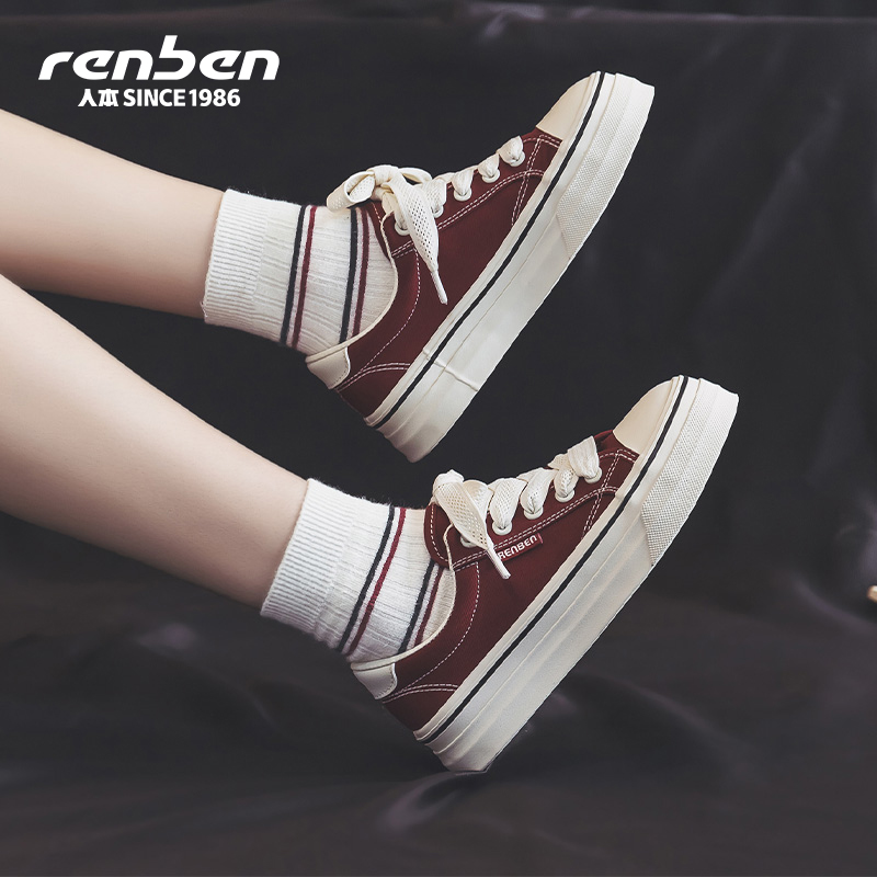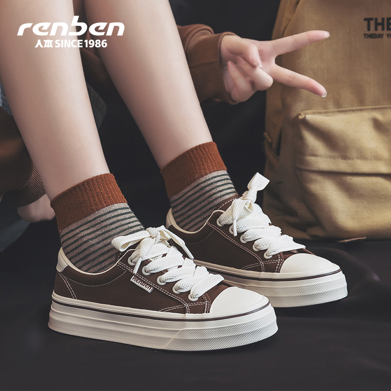 男女鞋 百搭休闲厚底小白鞋 四季 帆布鞋 子 清仓款 人本官方旗舰店正品