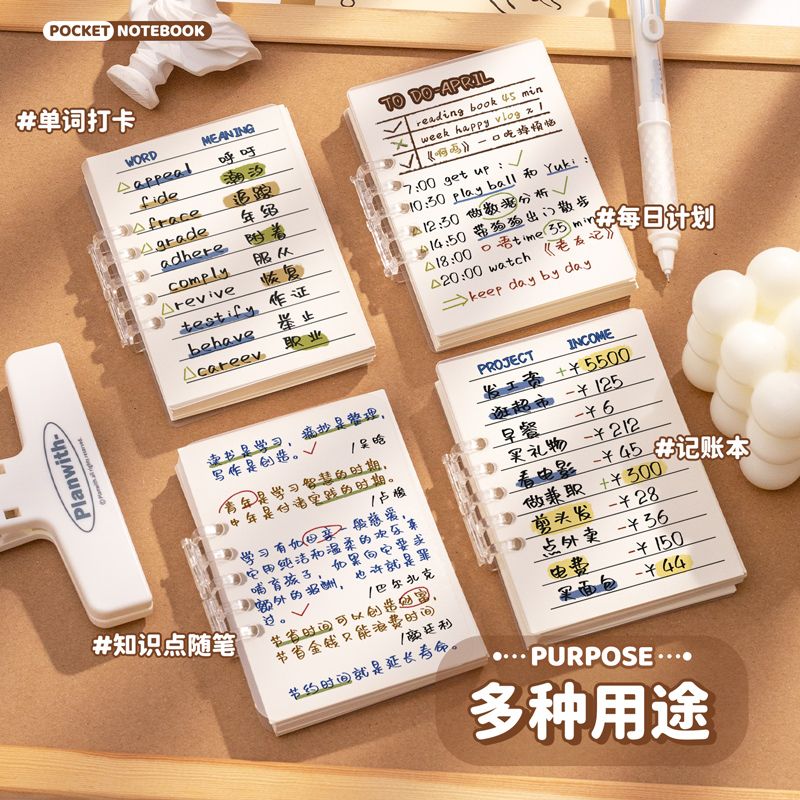 A7活页口袋本便携记事日计划随身活页笔记本子可拆卸横线网格空白