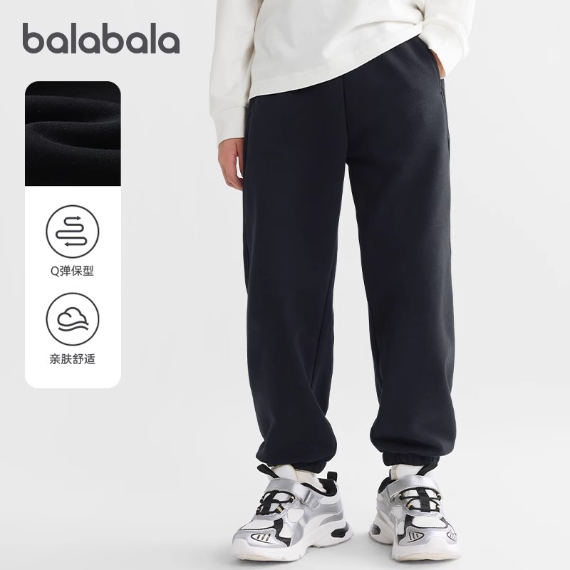 胖mm慵懒风松弛感加绒运动休闲裤 大码 女冬季 奶芙阔腿裤 子 黑色卫裤