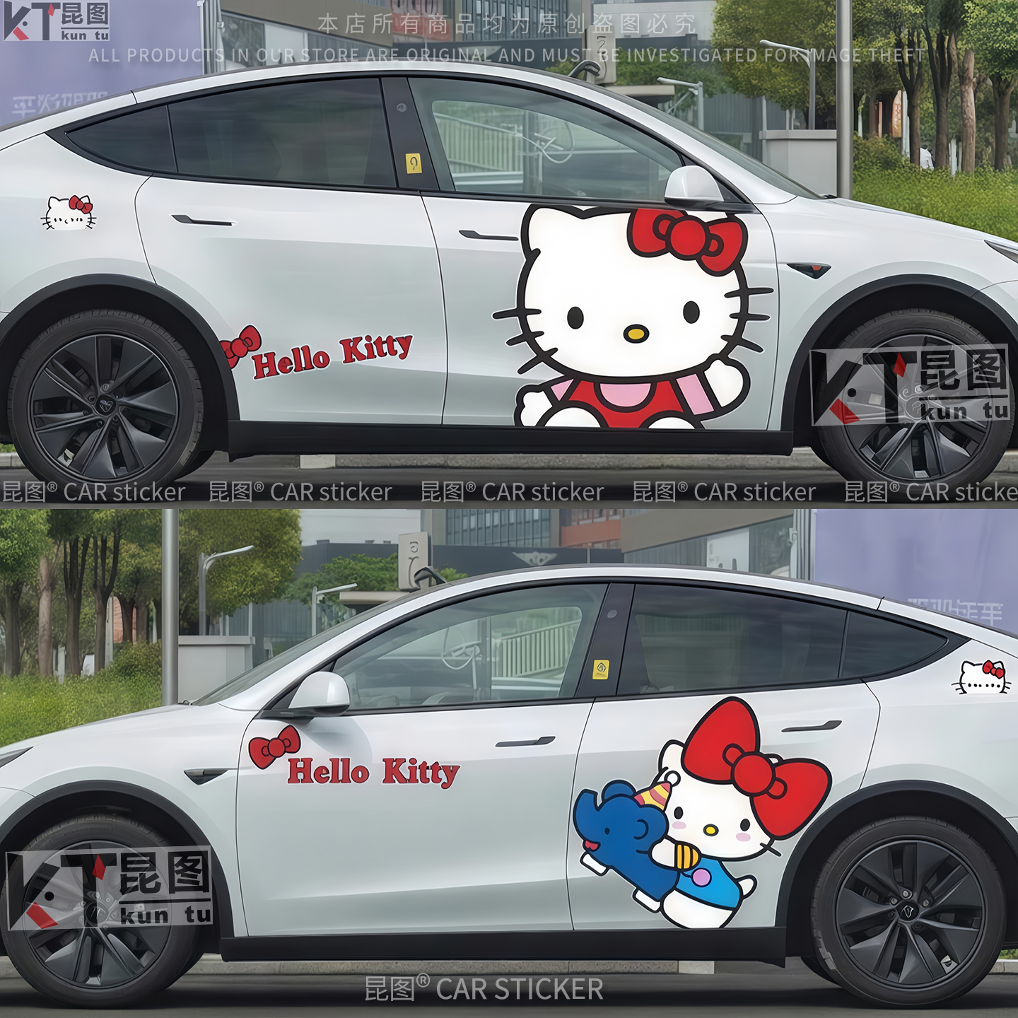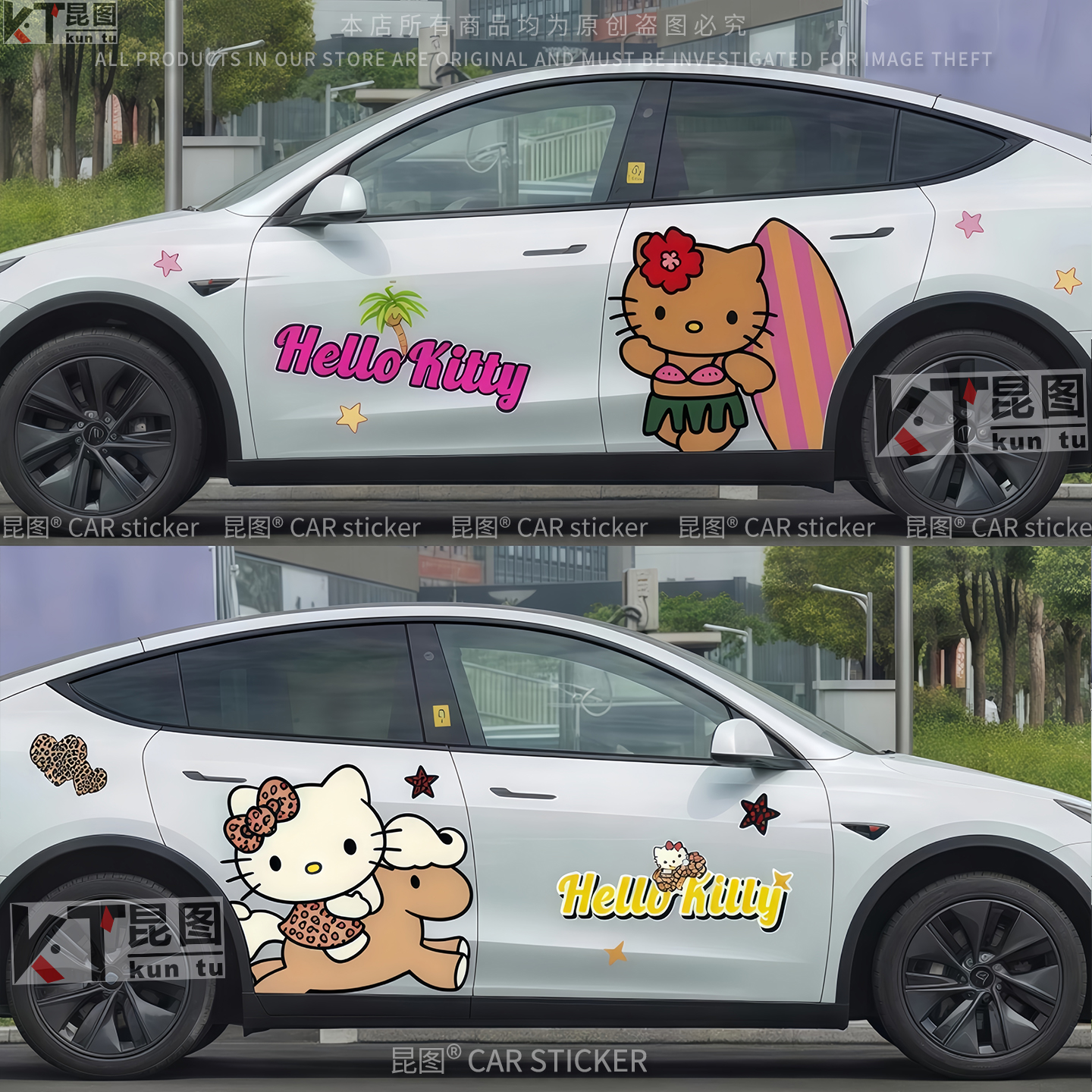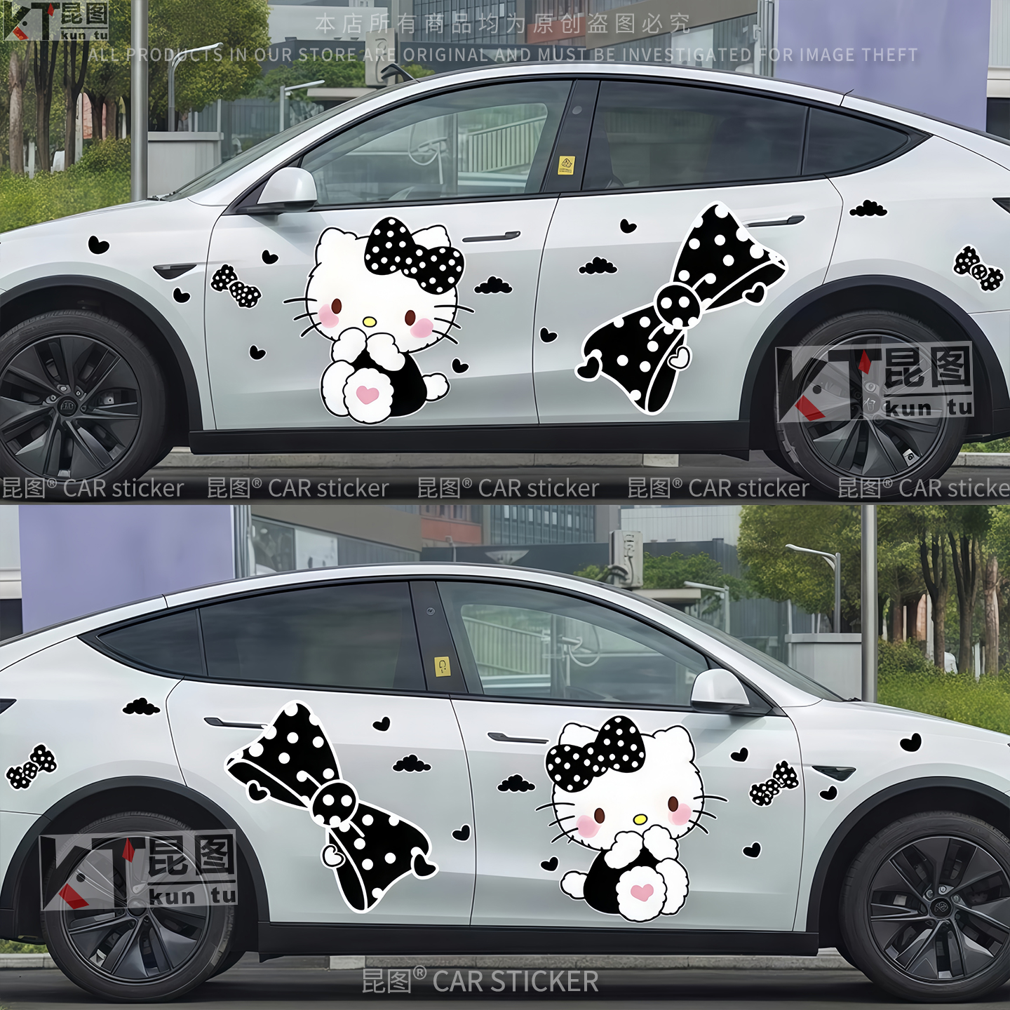 特斯拉model3 饰车身两侧拉花划痕遮挡 Y汽车贴纸KT猫车贴卡通改装