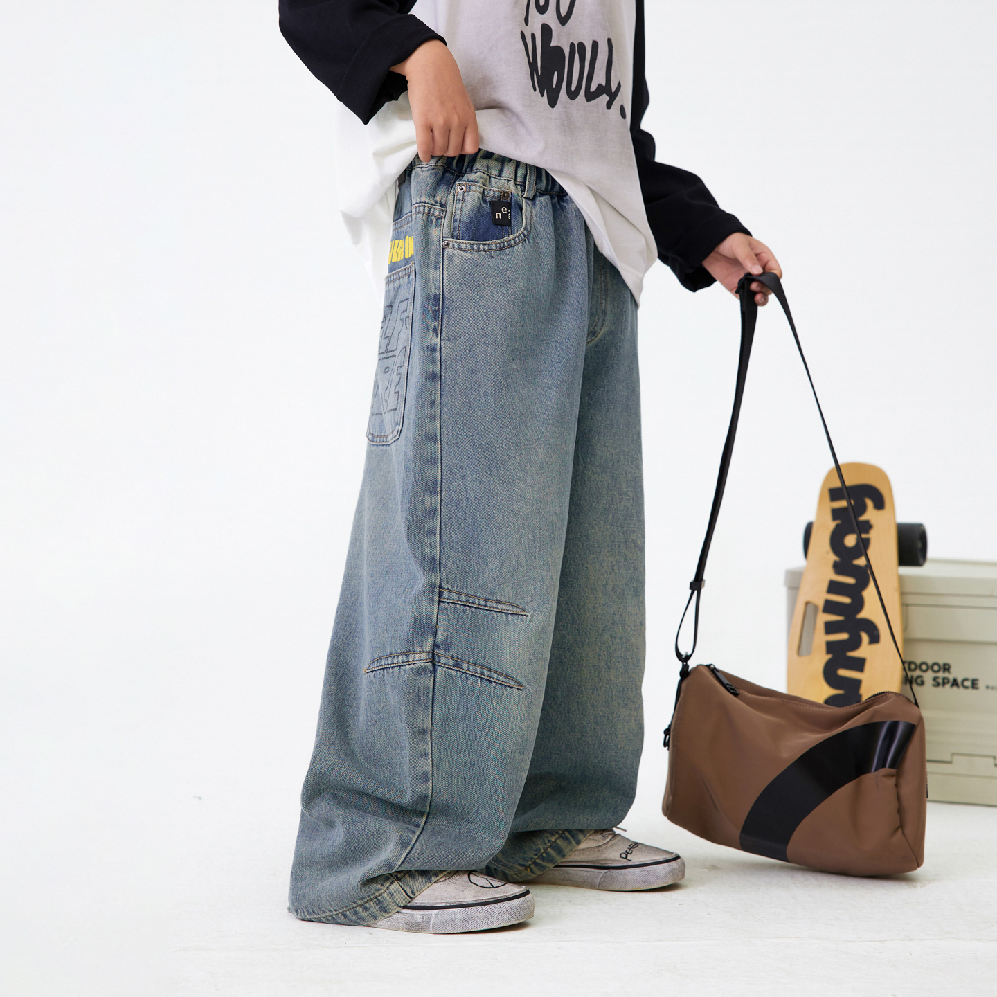 儿童男孩宽松百搭裤 2025新款 子 潮牌直筒阔腿软牛仔长裤 男大童秋季