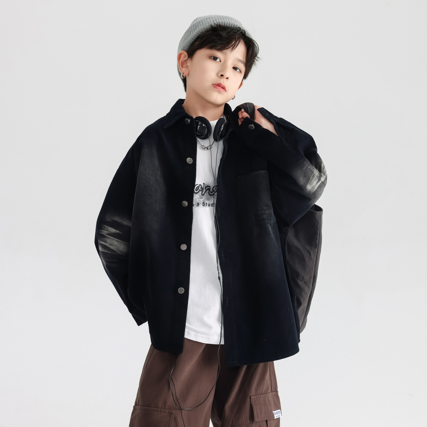 青少年儿童春秋休闲衬衫 男童秋季 潮酷渐变灯芯绒衬衣外套2025新款
