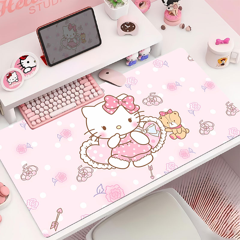 可爱kitty猫鼠标垫超大办公电脑桌垫粉少女心卡通凯蒂电竞键盘垫