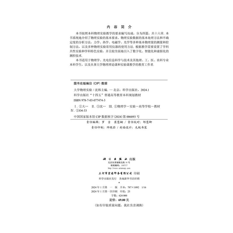 传媒股份有限公司新华书店正版 社普通高等教育本科教材沈韩大学教材中国科技出版 科学出版 大学物理实验