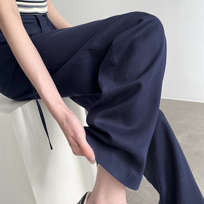 阔腿裤 藏蓝色亚麻裤 宽松休闲垂感直筒天丝窄版 2025新款 子女夏薄款