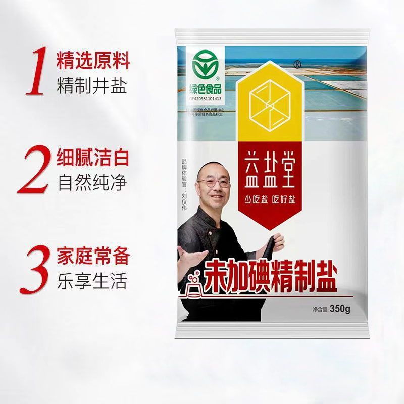 益盐堂未加碘精制食用盐350g 8袋家用深井无碘盐甲状腺专用细盐巴
