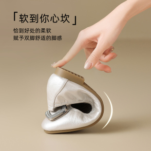 晚晚风气质奶奶鞋 ZHR真皮单鞋 方扣平底浅口豆豆鞋 新款 女2025夏季